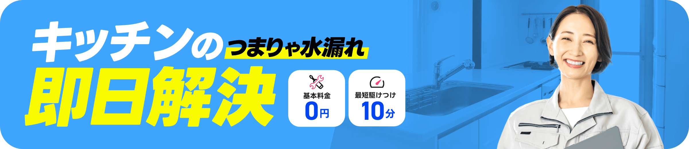 キッチンの水漏れ・排水のつまり・蛇口の不具合など、水まわりのトラブルに迅速に対応いたします。
